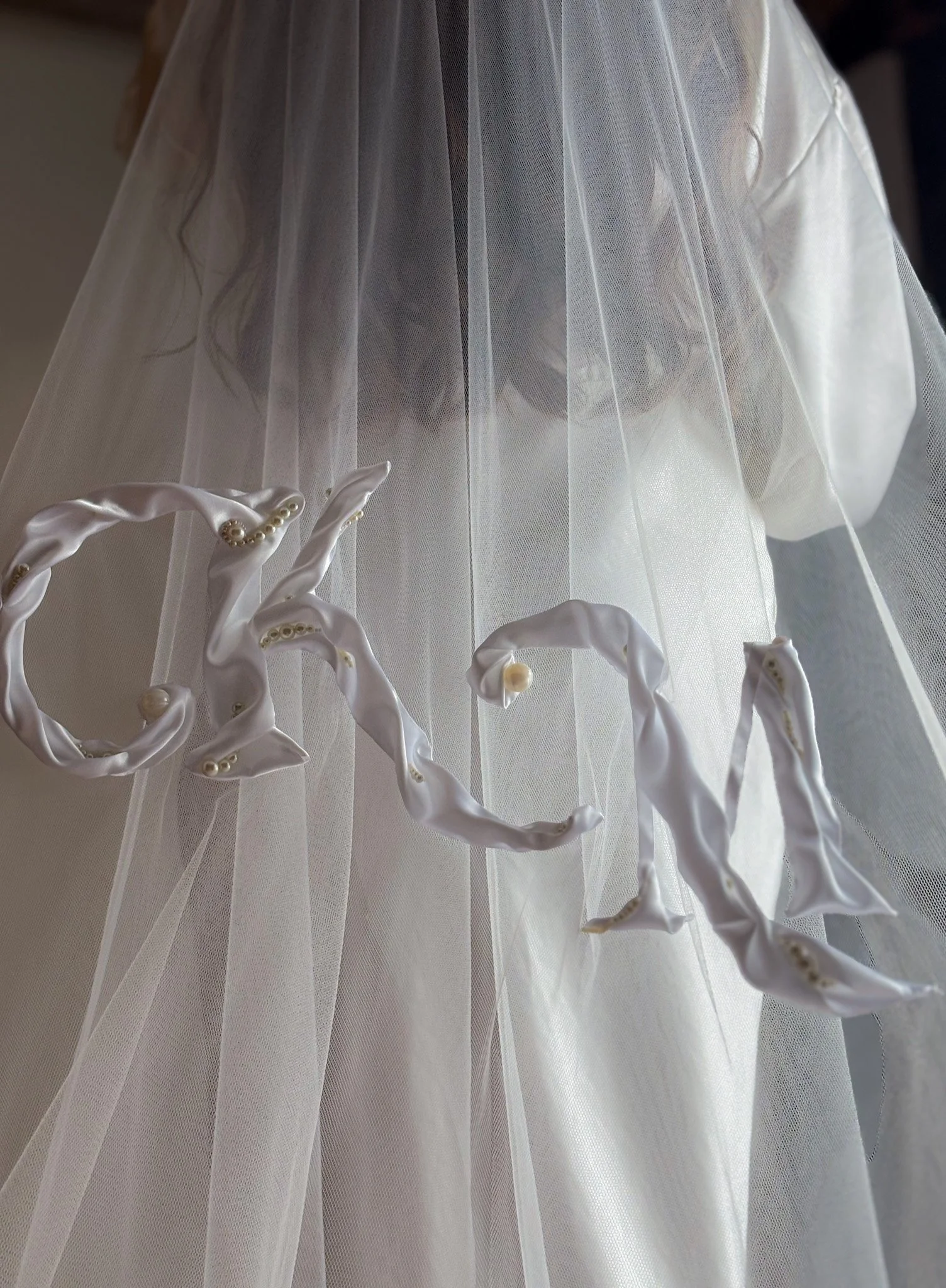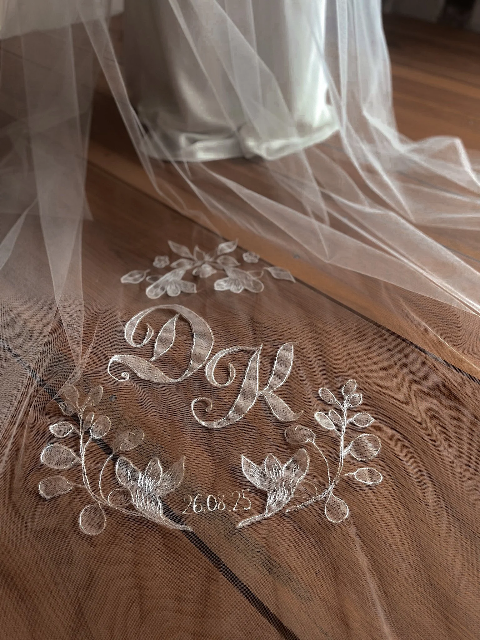 Our ‘Freesia and Eucalyptus’ monogrammed veil is designed with customisation at the forefront.