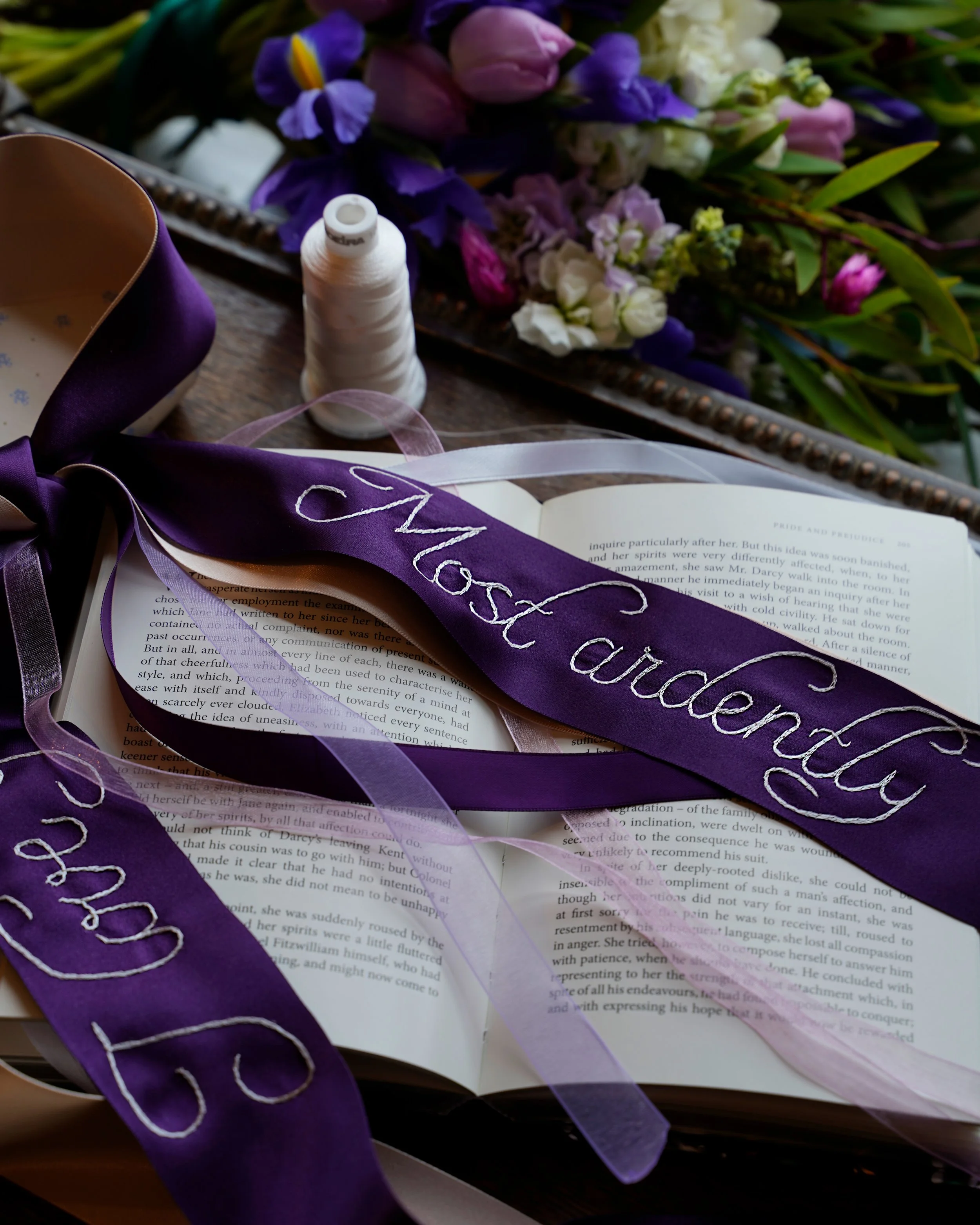 Looking for an elegant way to tie in your favourite book, movie or tv show? Our hand embroidered quote ribbons are the perfect extra…